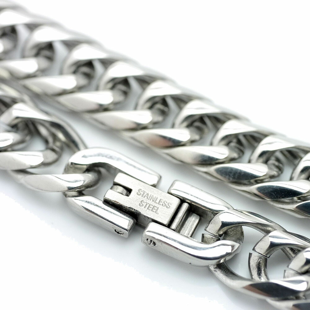 ■喜平ブレスレットの仕様 全長:21cm 幅:10mm 厚み:3mm カット:6面 色:銀 重さ:約32g 材質:ステンレス --------------- ■その他の喜平ブレス 細目:幅10mm以下 普通:幅11mm〜20mm 太目:幅21mm〜30mm